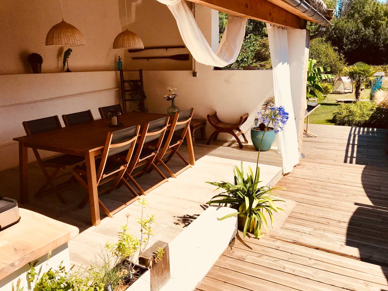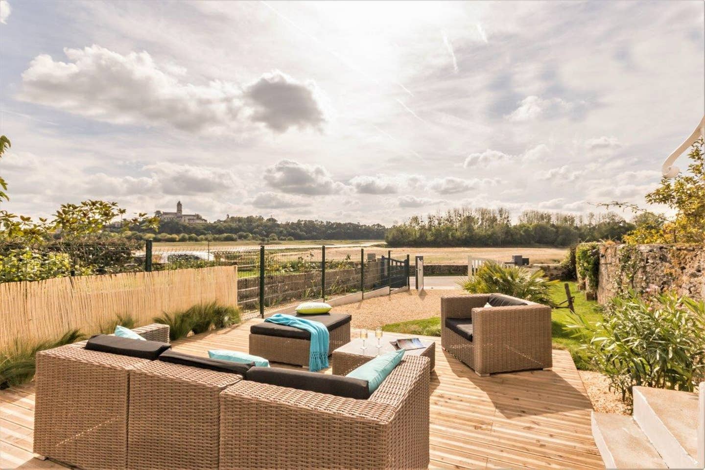 A l'arrière, une seconde terrasse avec jardin vous attend pour déjeuner ou vous reposer dans un hamac. L'environnement avec la vue imprenable sur la Loire dans un village de pêcheurs en fait un lieu unique pour se ressourcer. Par ses 2 salons, sa double terrasse, son espace déjeuner à l'extérieur à l'ombre, c'est un lieu où l'on vit autant dedans que dehors.